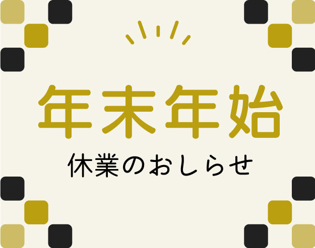 今年一年ご愛顧いただき誠にありがとうございました。誠に勝手ながら、当オンラインショップは下記の期間を年末年始休業とさせていただきます。 2023年12月29日〜2024年1月5日 1月6日から営業再開いたします。 また上記期間にご注文いただいた商品の発送は、営業再開後となります。 ご不便をお...